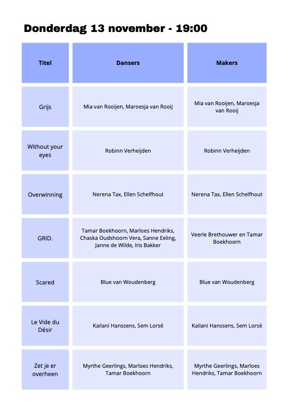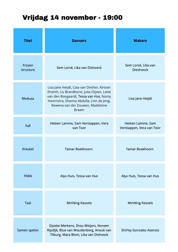 De studenten maken zich klaar voor de eerste performances van dit studiejaar. In stukken gemaakt en gedanst door alle jaarlagen.