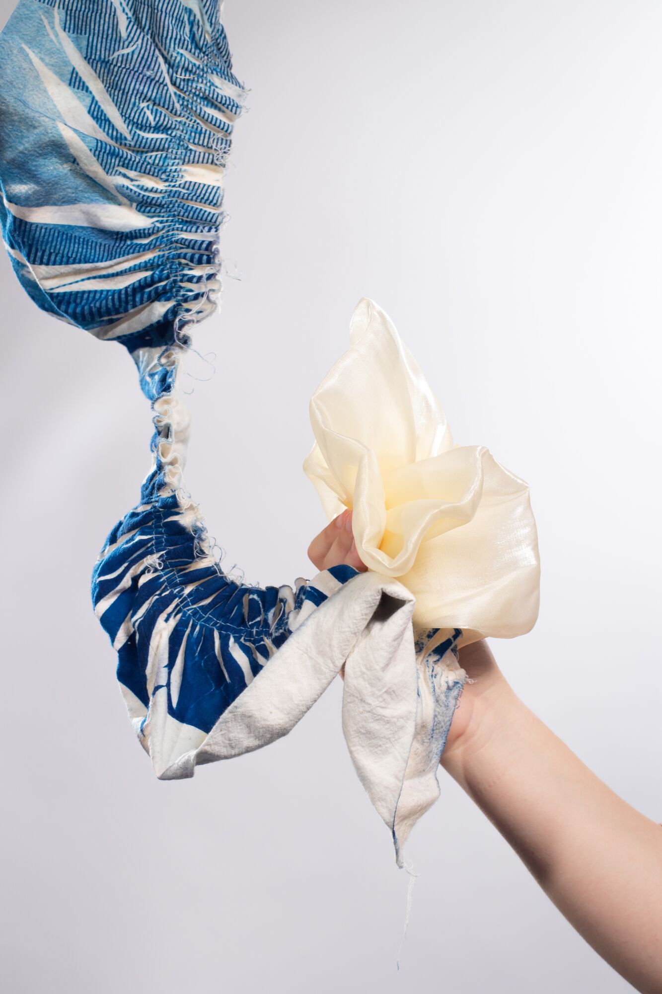 Plooien vormen een essentieel onderdeel van mijn beeldtaal: ze geven het werk een zachte, toegankelijke uitstraling en zorgen ervoor dat vormen meebewegen, vervormen en reageren op hun omgeving. Ik toon werk dat vanuit één basiselement is gegroeid, een zachte bouwsteen, die zich herhalend door de ruimte verspreidt.