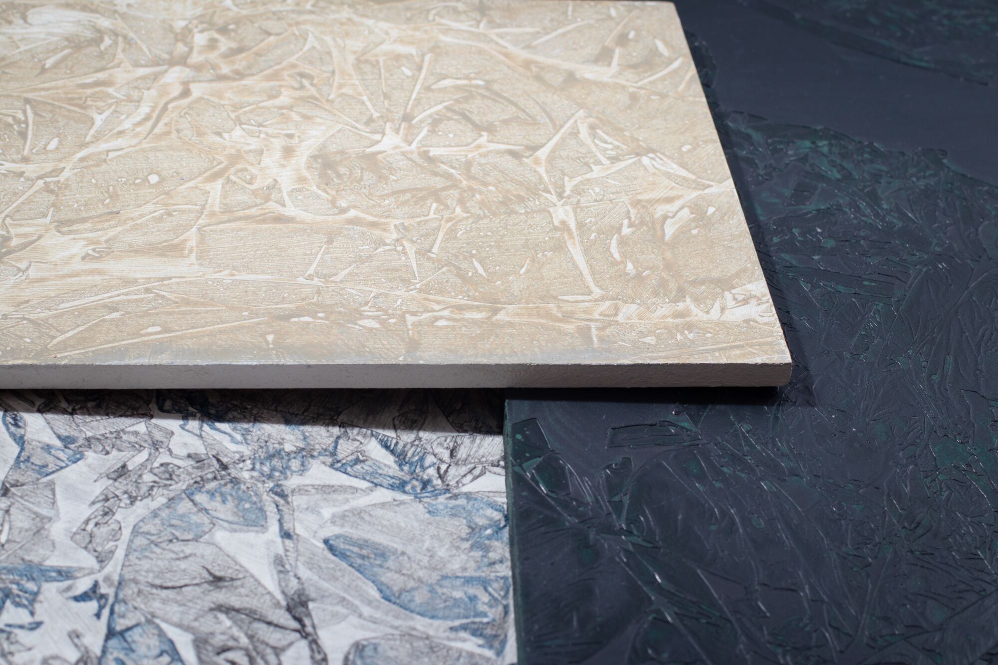 In mijn beeldende praktijk werk ik voornamelijk met acrylverf en inkt in combinatie met plastic. Deze keuze is niet zozeer vanuit het materiaal zelf ontstaan, maar eerder vanuit de handelingen die ik ermee kon uitvoeren. Het vloeibare karakter van de verf, gestuurd door het plastic, maakt het mogelijk om te werken met decalcomanie: een overdrachtstechniek waarbij toeval en controle samenkomen. Het beeld groeit vanuit materiaal, moment en context, niet vanuit een vooraf bepaald plan. Zo ontstaat er ruimte voor fragmentatie, gelaagdheid en een procesmatige benadering van betekenis.